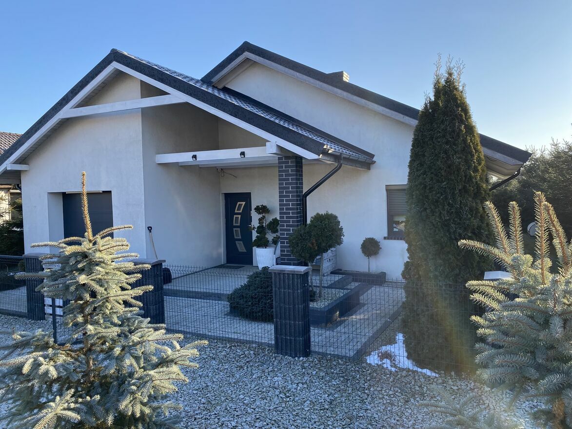 Oferuję na sprzedaż dom parterowy z użytkowym poddaszem o powierzchni 125 m² wykonany z silki termo o grubości 25 cm plus styropian 20 cm .Nieruchomość znajduje się na działce o powierzchni 950 m². Wnętrze wykończone w wysokim standardzie, z jasnymi kolorami i nowoczesnymi materiałami. Dom posiada 1 łazienkę, 3 sypialnie kuchnie , spiżarnia , salon oraz kotłownia połączona z pralnią . Dom posiada ogrzewanie podłogowe na całej powierzchni domu . Zamontowana jest pompa ciepła Panasonic 7 KW oraz kominek z automatycznym rozprowadzeniem ciepłego powietrza do każdego pomieszczenia na dachu zamontowana fotowoltaika o mocy 5,3 KW instalacja jest na starych warunkach . Dom wyposażony jest w okna trzyszybowe i rolety zewnętrzne. Dom posiada oczyszczalnie biologiczną z odzyskiem wody , Ogród jest całkowicie zagospodarowany , podlewanie zautomatyzowane, zbiorniki w ziemi na zbieranie wody deszczowej o pojemności 4 m . W ogrodzie znajduje się wiata wypoczynkowa o wymiarach 22 m , nasadzeniami i liczną roślinnością, w tylnej części działki 25 m garaż . Na działce zamontowana jest również sauna .Lokalizacja jest bardzo atrakcyjna. W pobliżu znajdują się przystanki autobusowe, co ułatwia codzienne dojazdy. Okolica jest spokojna, a jednocześnie dobrze skomunikowana z miastem. Bliskość infrastruktury miejskiej sprawia, że jest to idealne miejsce do życia.